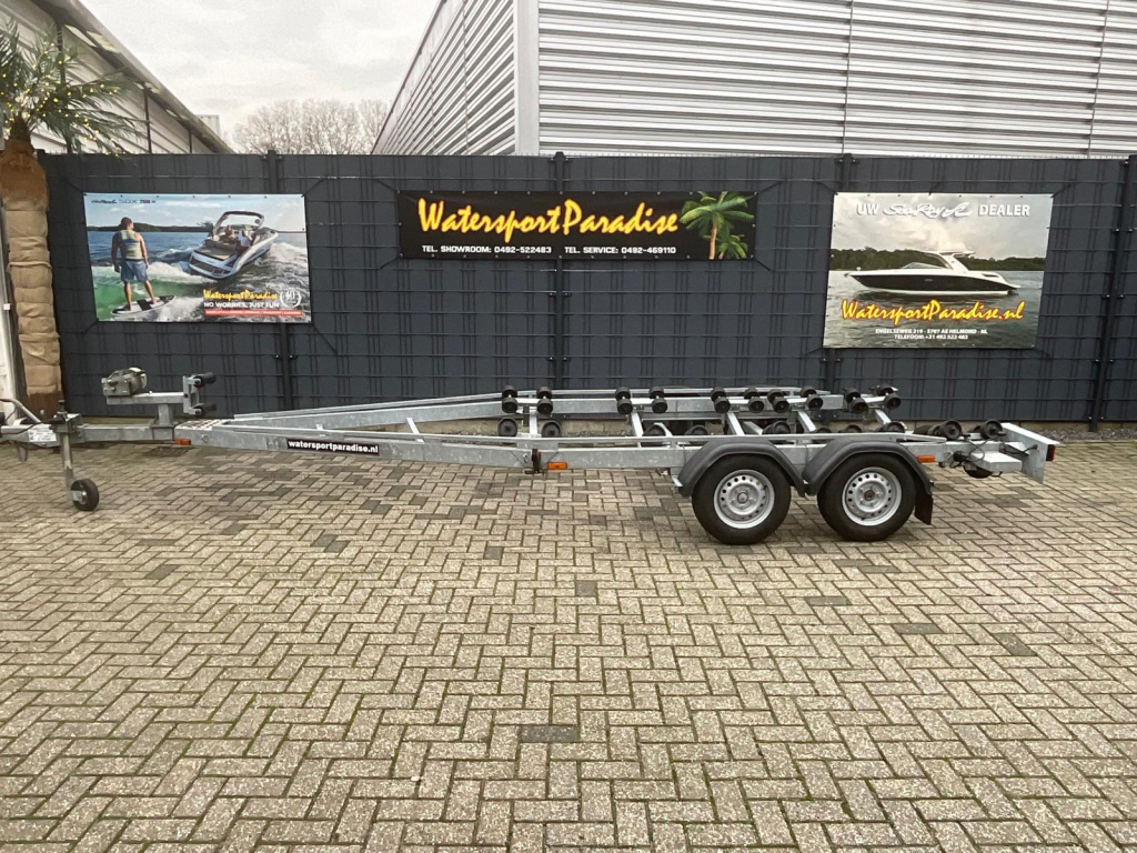 Past onder elke boot vanwege de elektrisch, hydraulische lifters. RDW toelating 3500Kg Technische toelating 5400KG (3 assen / 1800kg)
