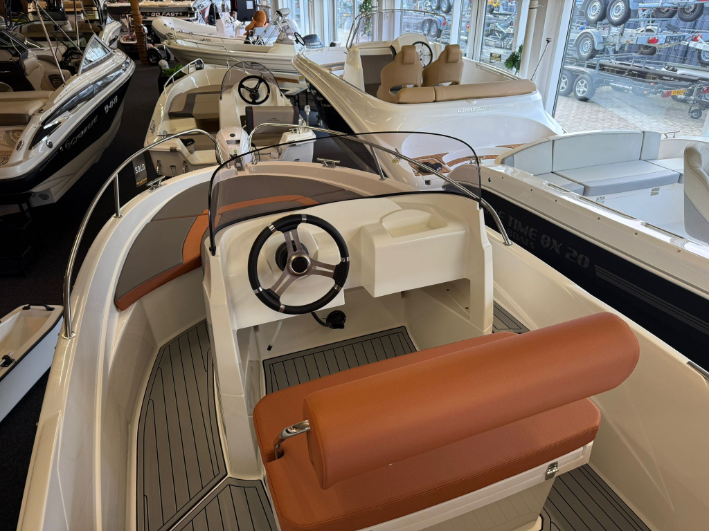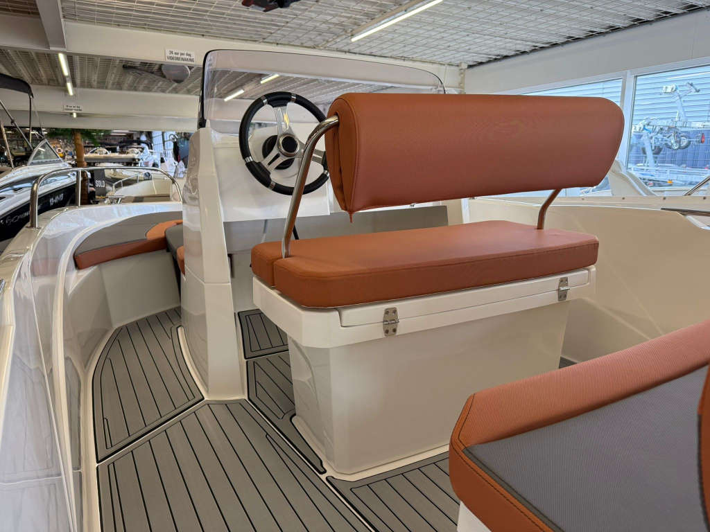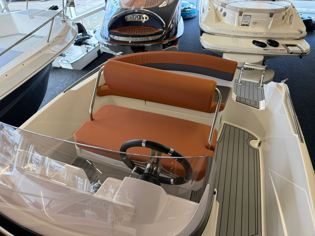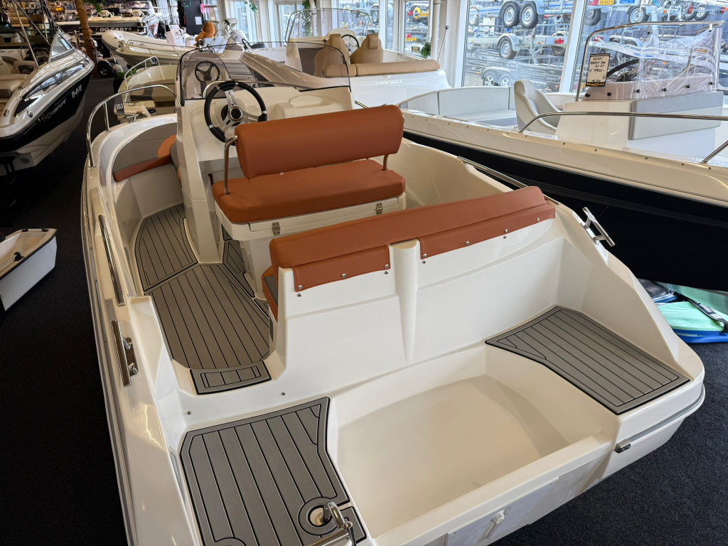 NIEUW!Rijkuitgerust met zonnedek en zeer veel opbergruimte. Ruimte voor 6 personen en een maximaal motorvermogen tot 100PK.De boot weeg slechts 500KG dus eventueel bij een