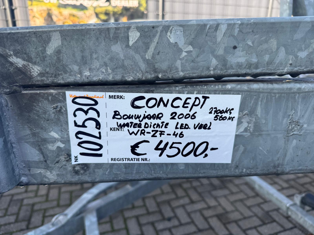 Te koop: een zeer nette en solide Concept boottrailer uit 2006, voorzien van alle belangrijke opties en met een royale lengte van 8,30 meter. Dankzij een breedte v