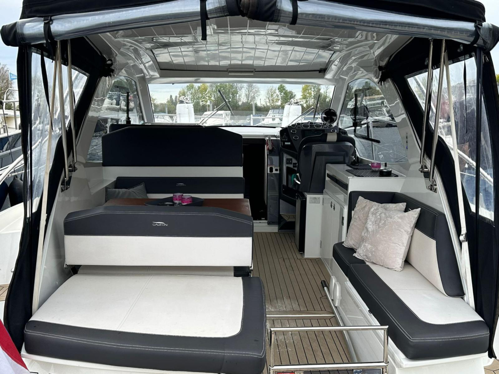 Deze Galeon 335 HTS is een moderne en sportieve cruiser die direct klaar is voor nieuwe avonturen. De boot heeft een stabiele deep-V rompvorm en een sterke