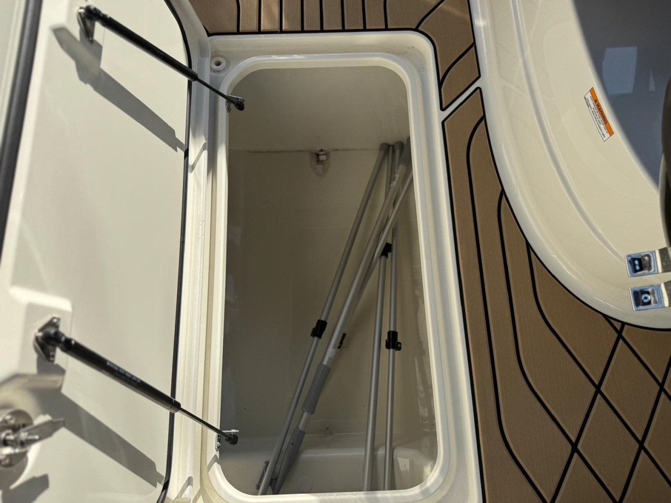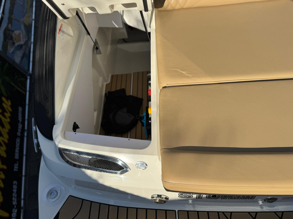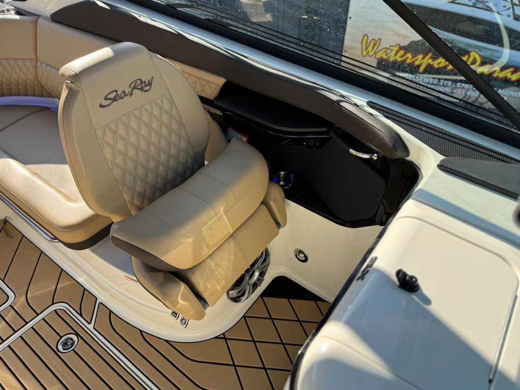 WIEDERHERGESTELLTER RAUM Die SLX 260 wurde durchdacht konzipiert, um das Platzangebot zu maximieren. Das aktualisierte Cockpit-Layout umfasst L-förmige Sitzplätze mit tieferen Sitzen, um Ergonomie und Komfort zu fördern. Das Cockpit ist nahtlos ineinander übergehend und bietet überall praktischen Stauraum, wie z. B. ein vergrößertes Skifach im Cockpitboden und einen verspiegelten Schrank zur Aufbewahrung von Ausrüstung, Schwimmmatten und Schlauchbooten.