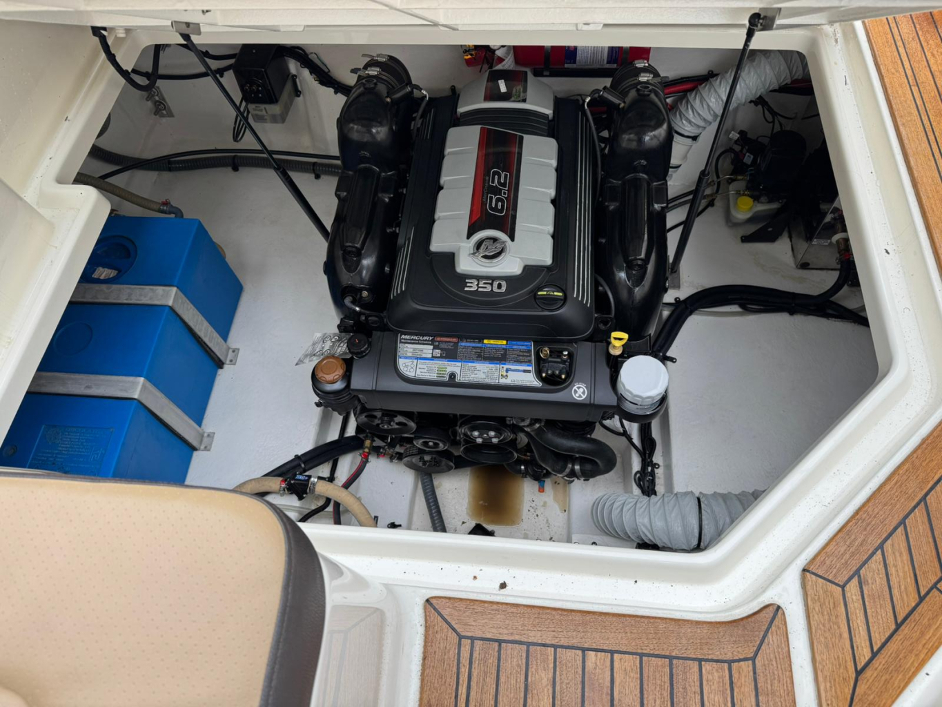 Sea Ray Sundancer 265 in nette staat, uitgerust met o.a. buitenkoelkast, kuipspeakers, SIMRAD navigatie, buitendouche, magnetron, boordverlichting, stootwillenhouders, kussenset op de boeg en een achterbank met klapfunctie (zit-, lounge- en ligstand). Voorzien van een zwarte radarwing. Ruime kuip, praktisch zwemplatform en comfortabele binnenruimte met slaapgelegenheid. Direct vaarklaar.