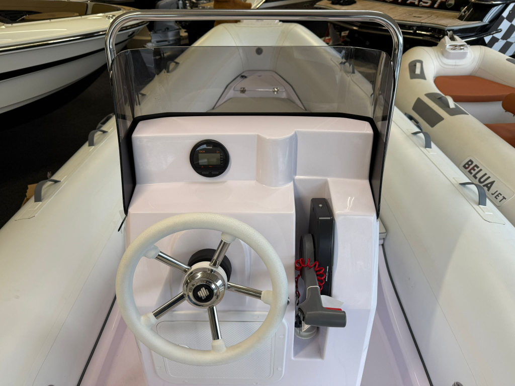 The new version of the D.570 has been completely revised in its deck layout and has made it possible to brilliantly combine the maneuverability and manageability typical of its dimensions of less than 6 meters with the generosity and care of its interior spaces and of its equipment, features like boats of much larger dimensions. The completely redesigned center console now includes a seat in the bow, while retaining the practical central multifunction driver's seat. The comfortable rear seat, the large sun deck on the bow, the various and spacious lockers in combination with the generous fiberglass structure provide a navigation rich in comfort and total safety.