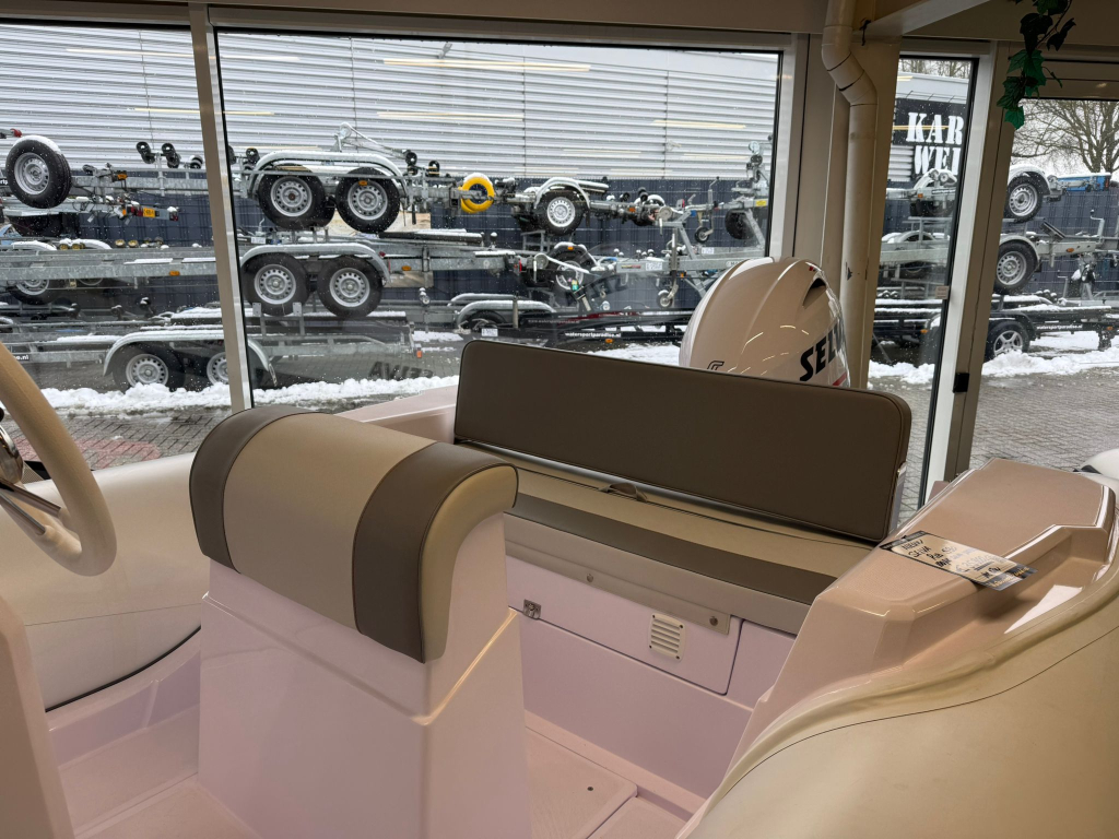 Die neue Version der D.570 wurde in ihrer Decksaufteilung völlig neu konzipiert und hat es ermöglicht, die für ihre Abmessungen von weniger als 6 Metern typische Manövrierbarkeit und Handlichkeit mit der Großzügigkeit und Sorgfalt ihrer Innenräume und ihrer Ausstattung zu kombinieren, Merkmale wie bei Booten mit viel größeren Abmessungen. Die völlig neu gestaltete Mittelkonsole umfasst nun einen Sitz im Bug, wobei der praktische zentrale Multifunktionsfahrersitz beibehalten wurde. Die bequeme Rückbank, das große Sonnendeck am Bug, die verschiedenen und geräumigen Stauräume in Kombination mit der großzügigen Fiberglasstruktur sorgen für eine komfortable und sichere Navigation.