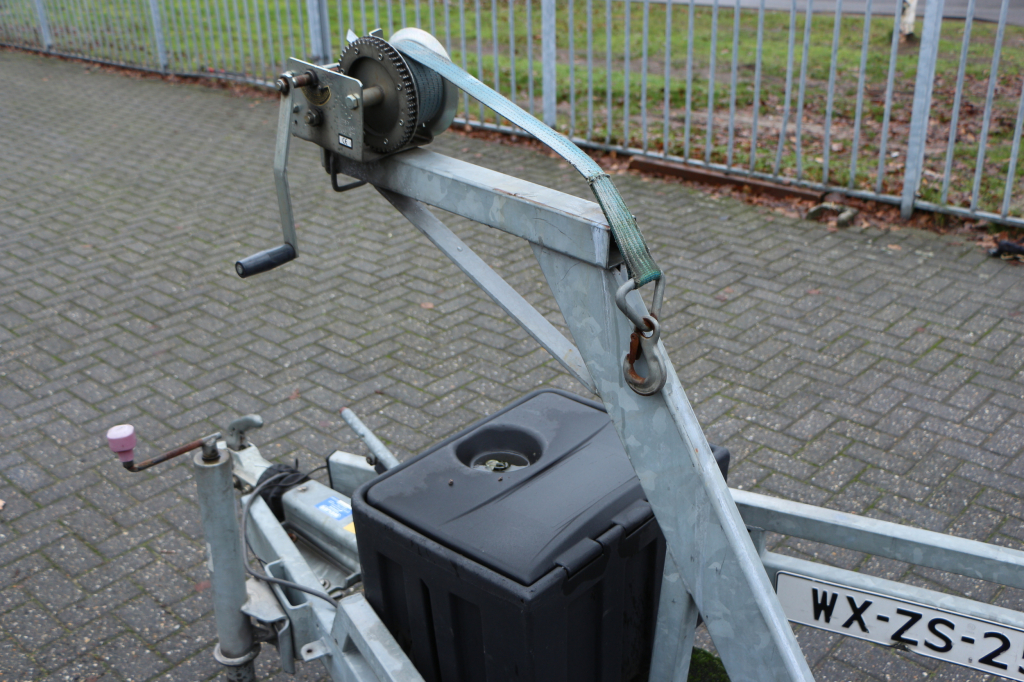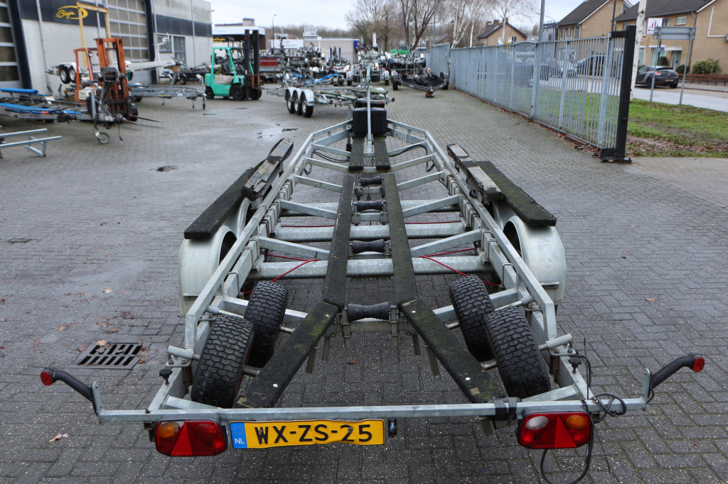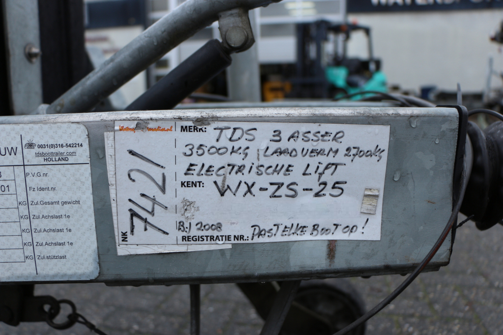 Past onder elke boot vanwege de elektrisch, hydraulische lifters. RDW toelating 3500Kg Technische toelating 5400KG (3 assen / 1800kg)